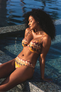 Optez pour le coloris Horizon d'Arizona Wave, inspiré des vagues et du ciel ensoleillé. Cette culotte associe des nuances de rose et de teintes chaudes, sublimées par des fils métallisés. Les anneaux dorés effet bambou apportent une touche élégante, avec plusieurs modèles pour personnaliser votre look